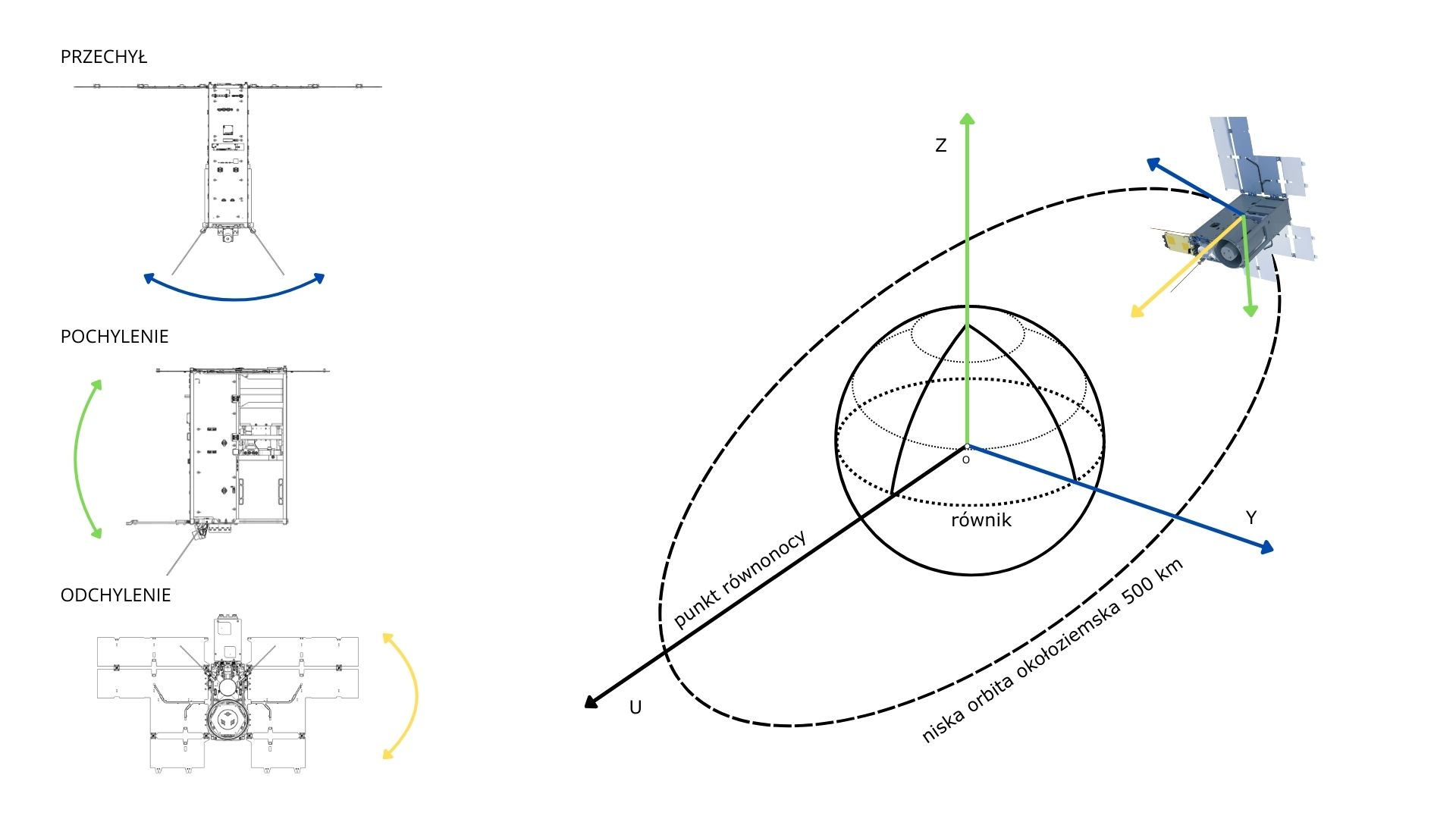 Na orbicie każdy ułamek stopnia ma znaczenie. Dlatego nanosatelity korzystają z zaawansowanych systemów określania i zadawania orientacji (ang. ADCS - Attitude Determination and Control System), które odpowiadają za identyfikację i utrzymanie właściwej orientacji w przestrzeni. ADCS integruje dane z czujników i steruje aktuatorami, aby realizować orientację satelity względem trzech osi obrotu. W nomenklaturze inżynierii kosmicznej i lotniczej rozróżniamy i definiujemy:
